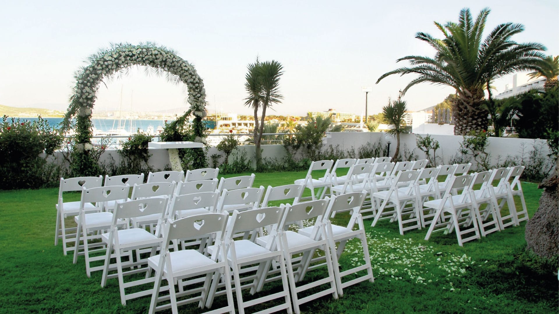 Palm Terrace 1, 2, and 3, composed of grassy terrace areas of various sizes, offer a perfect ambiance for your wedding and cocktail events.